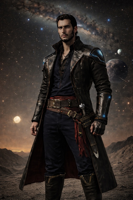| Physical Description | Zedd Sykes stands tall, with a lean but muscular build honed from years of physical labor and engineering side work. His dark hair is usually brushed back, giving him a fairly clean look, while his piercing blue eyes can shift from mischievous to intense in an instant. He often sports a well kept, short beard, adding to his roguish charm. Zedd’s attire is a blend of practicality and pirate flair—functional utility gear that includes a sturdy leather jacket that can be adorned with various tools and gadgets, cargo pants with numerous pockets, and sturdy boots. His belt holds an assortment of devices, from miniaturized engineering tools to weapons for when the time calls. |